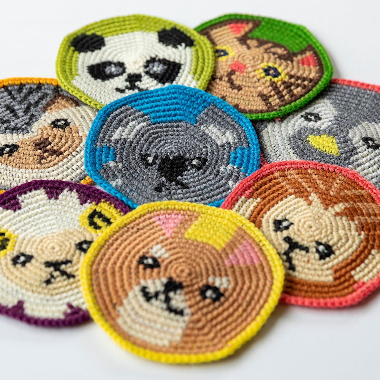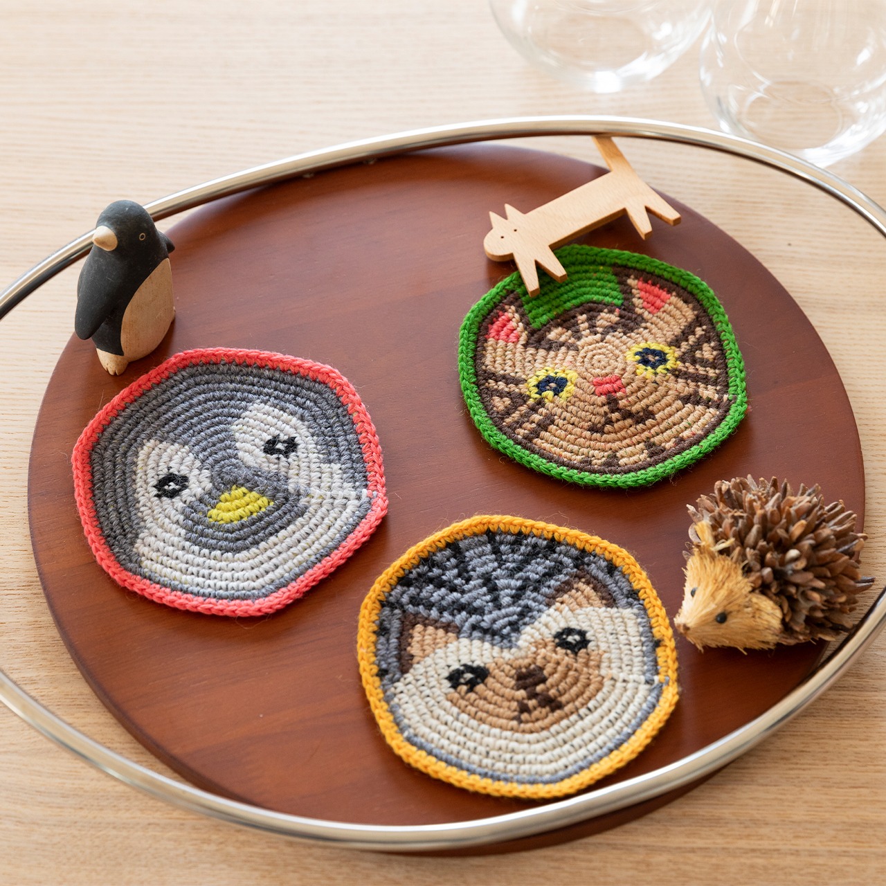かぎ針編みで細編みをぐるぐる編むだけで表情が現れてくる、編み進めるのが楽しくなる動物コースターです。