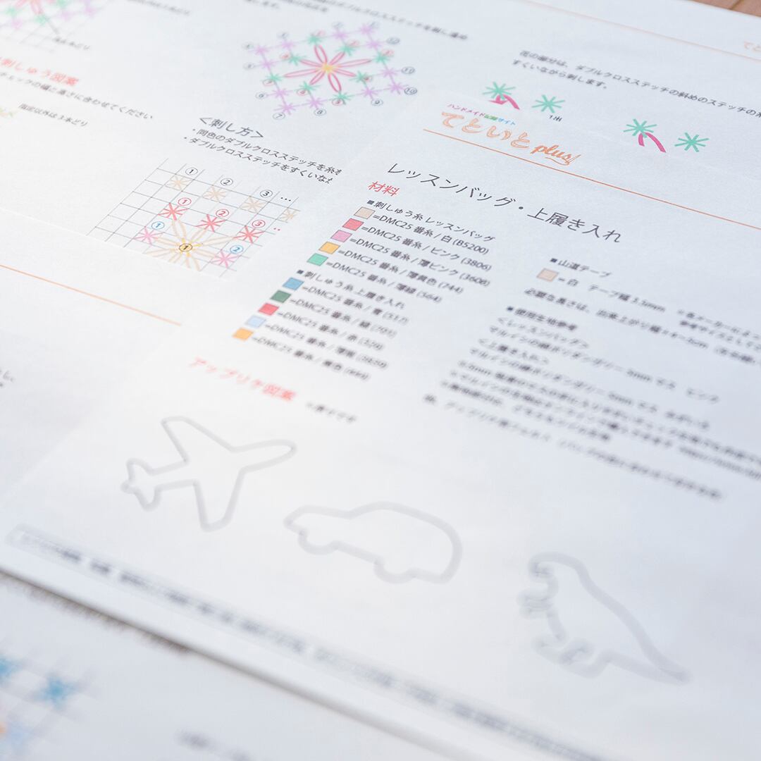 ※刺しゅうの図案と刺し方のみのレシピになります。バッグと上履き入れの作り方は含まれていませんのでご了承ください。
