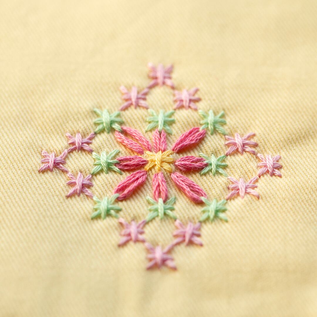 ステッチ全体をキレイに揃えるには、糸が細くならないように撚りのない状態をキープしておきましょう。刺しゅう枠を使用して生地をピンと張った状態で刺すと、シワにならずに仕上がります。